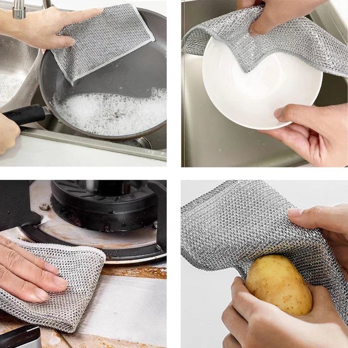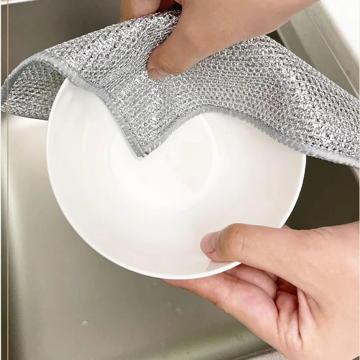 Su tecnología de doble capa de alambre metálico es capaz de eliminar las manchas más difíciles sin dañar tus utensilios de cocina, con su textura suave y absorbente, una gran diferencia con los estropajos de toda la vida.