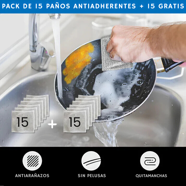 Se acabó esforzarse y perder tiempo frotando para quitar la suciedad. ¡Elimina las manchas y grasas de tus ollas, sartenes, vitro, etc. fácilmente! Este práctico pack de 15+15 gratis te proporciona la cantidad perfecta para satisfacer todas tus necesidades de limpieza, mientras disfrutas de un ahorro significativo.
